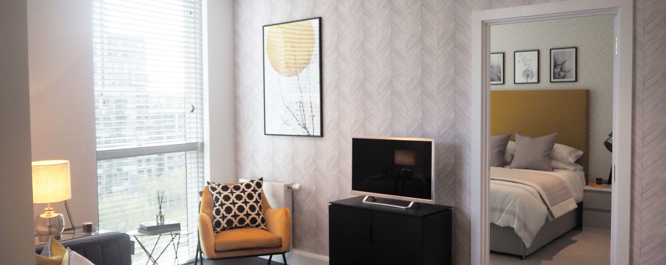 This show home apartment in Canary Wharf was styled to reflect modern city living with a fresh, contemporary feel.